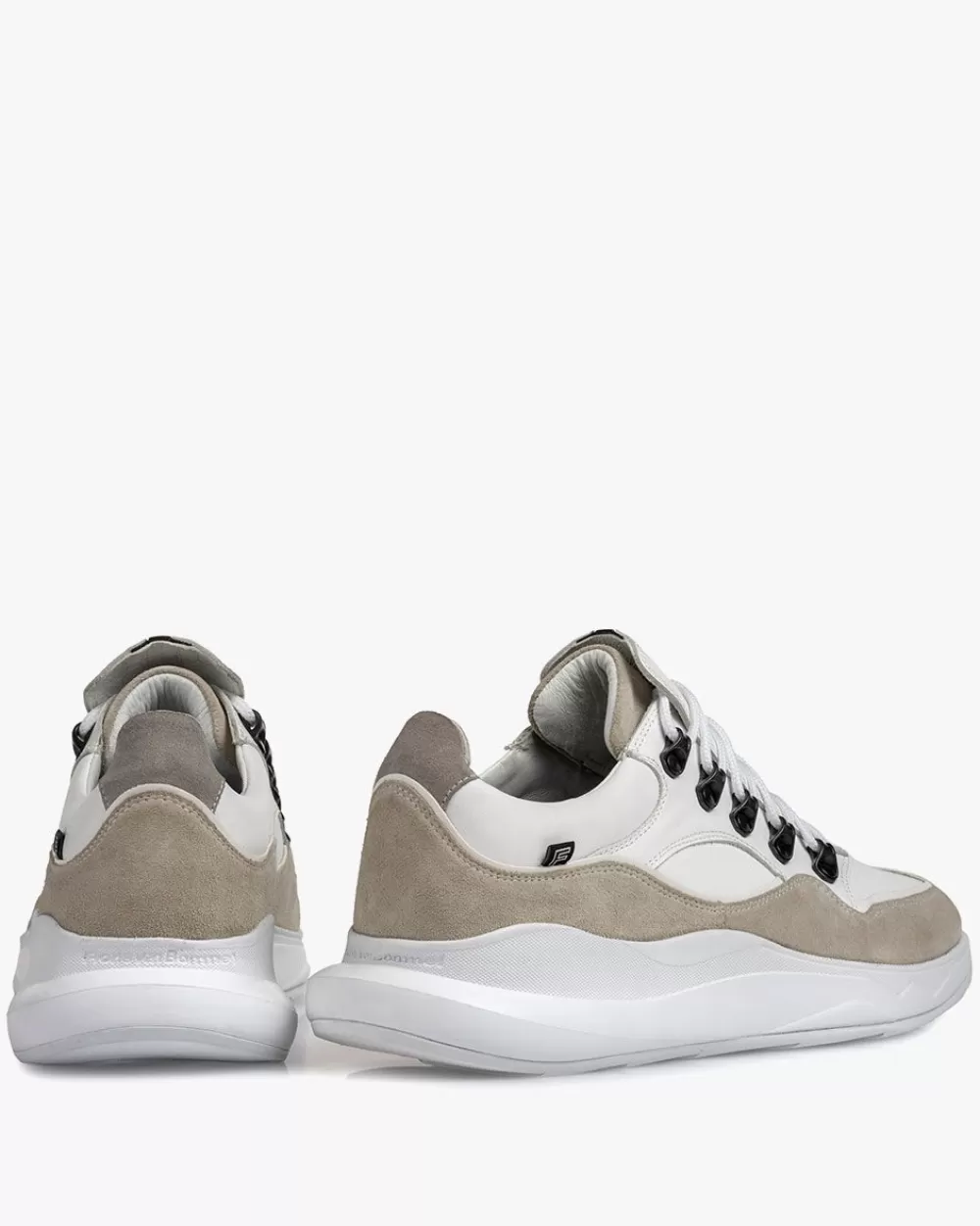 This ‘Bulki’ sneaker looks minimalist but definitely has a rugged touch to it thanks to the right details. The white calf leather combines with off-white suede, making this model particularly versatile to wear. The chunky sole sports some trimlines and the hiking boot lacing gives the sneaker its very own character. This shoe will keep you comfortable all season long.