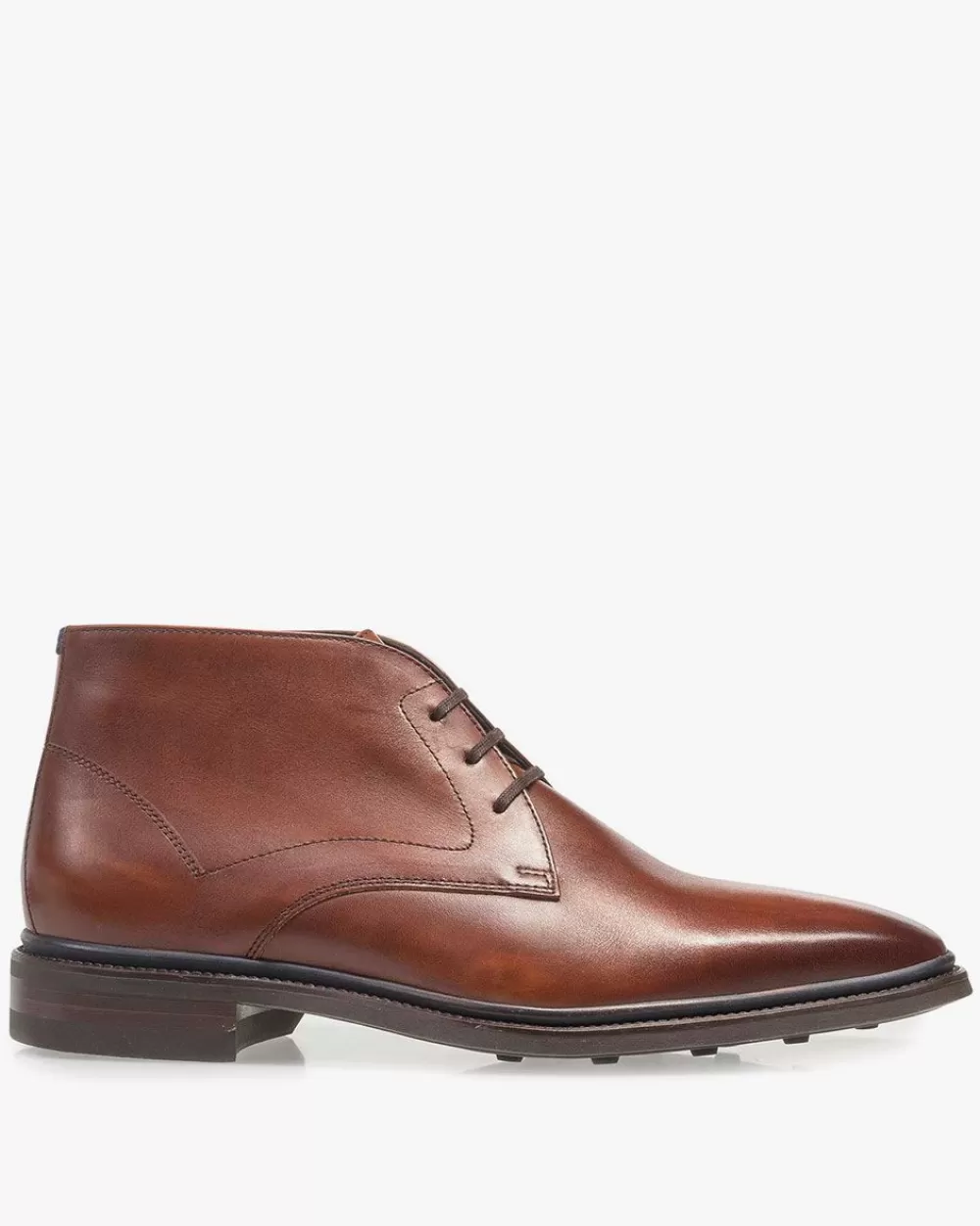 A casual lace boot made of dark cognac-coloured calf leather. The luxurious shine of the leather is finished by hand.This article has been given a new article number. The old article number is 10667/03.