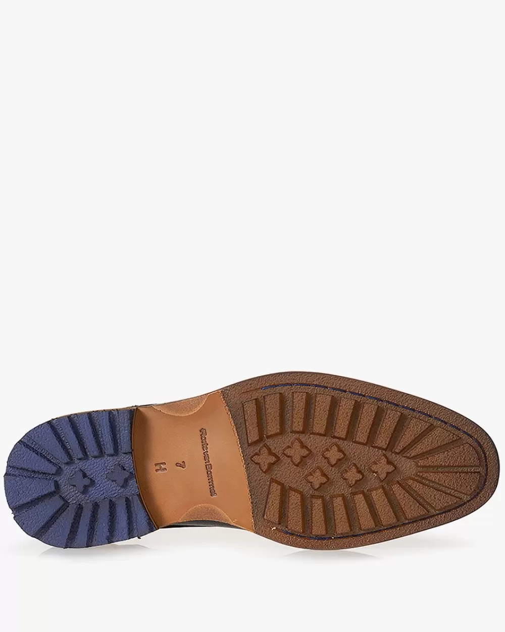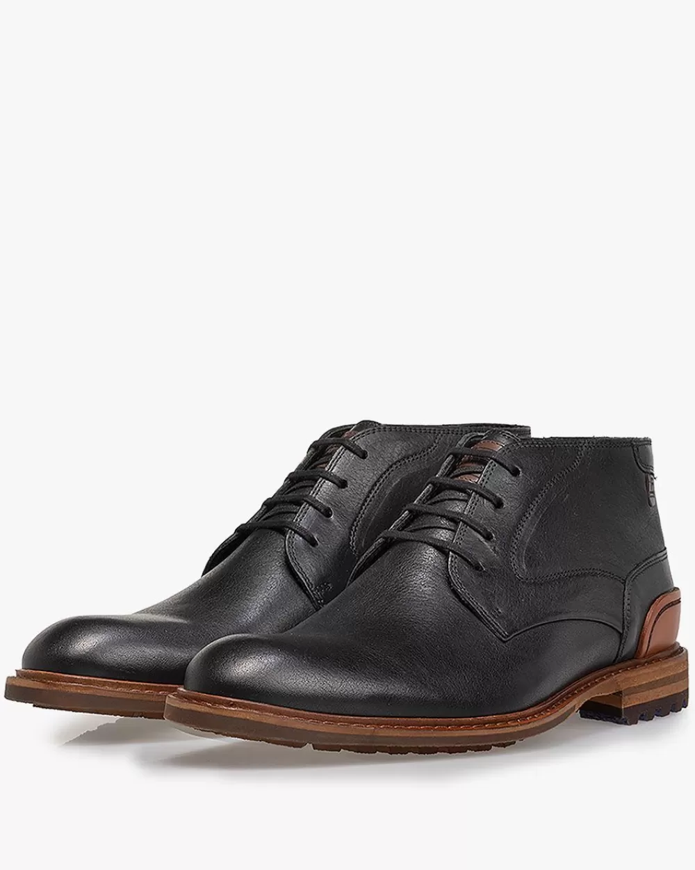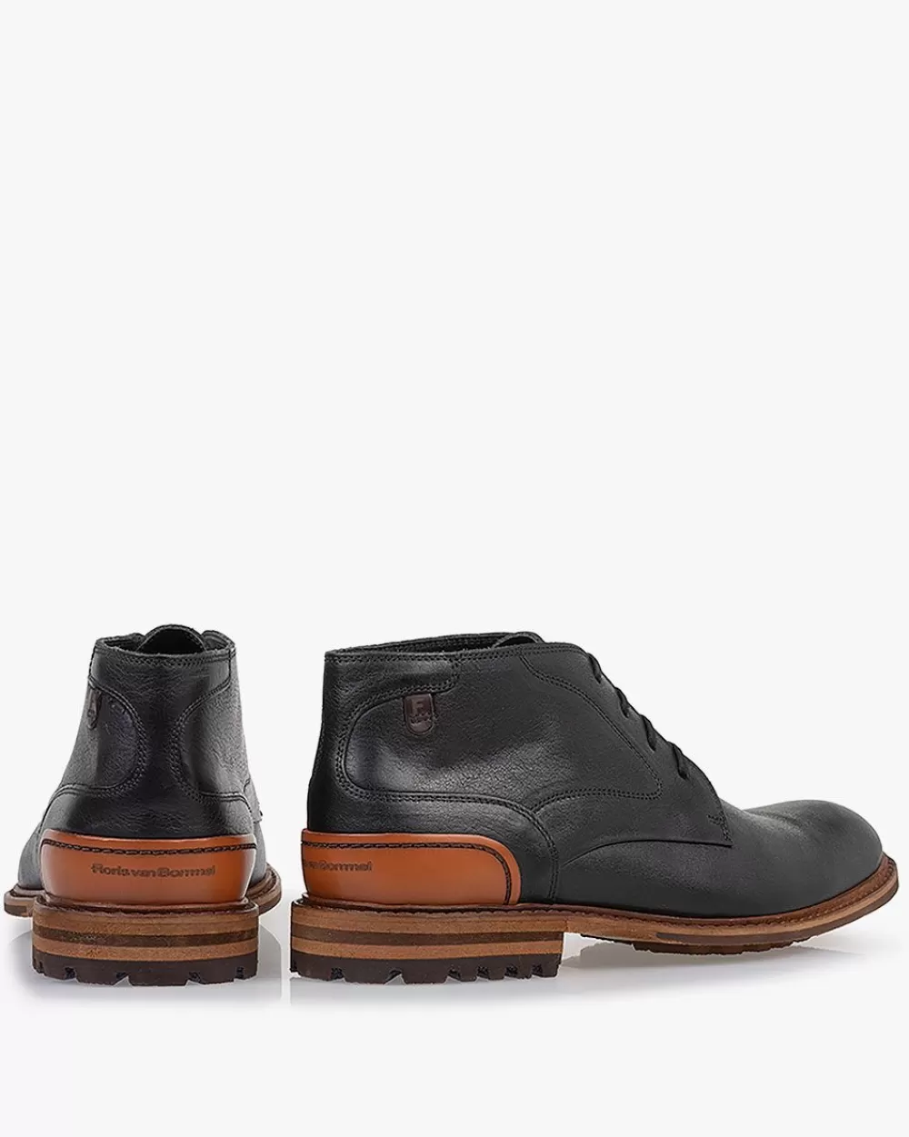 This casual all-round boot is chic and sporty at the same time. The last looks slim, but offers plenty of space for a solid foot thanks to its H-width. The leather of the sole edge and heel has a matte finish. The outsole has a durable commando profile that tapers towards the forefoot. The back of the boot has a heel cap made from extra durable vegetable tanned leather, sporting the laser-cut Floris van Bommel logo. The boot is finished with premium calf leather lining. This version is made of black calf leather.