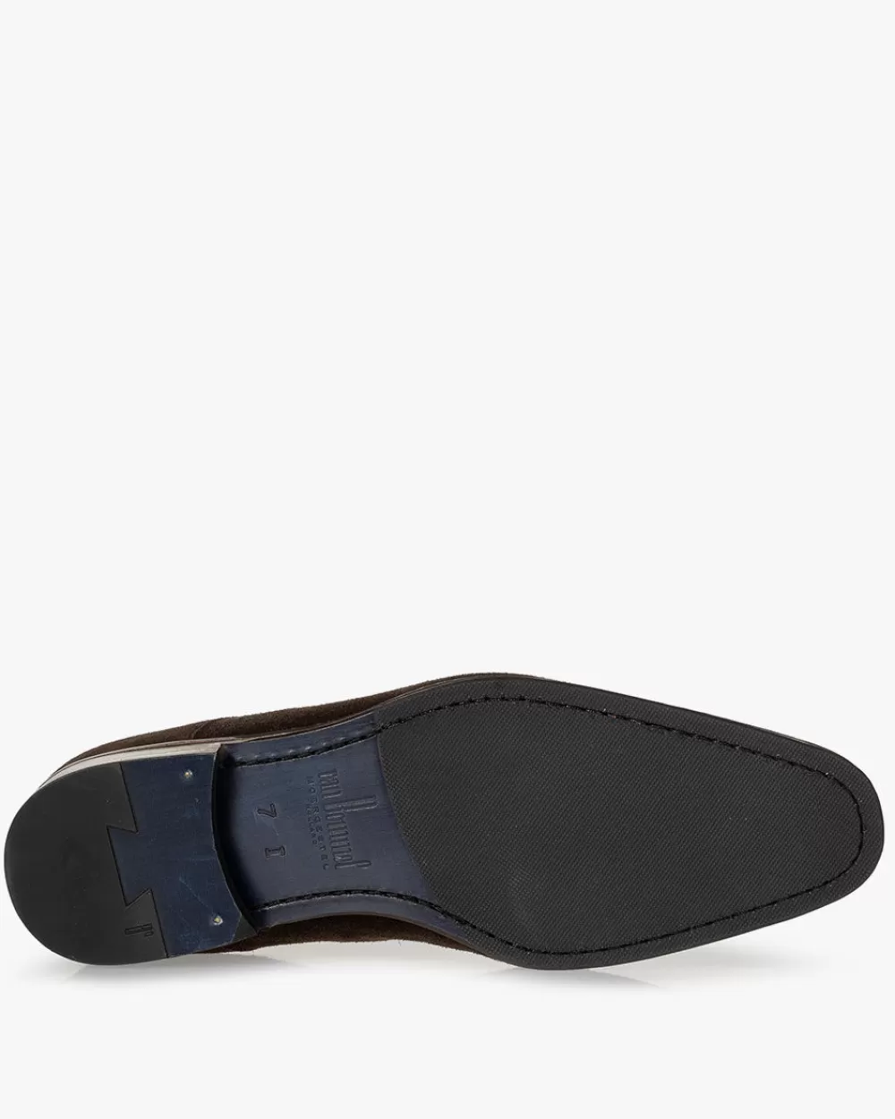 This buckle shoe is part of the classic Van Bommel collection. This shoe has extra wide fit. The last has an I-width and is finished with a removable footbed. The shoe has been made using the Blake method. Two very fine, decorative notches have been milled into the sole edge. Dark brown suede has been treated with vegetable oils. This gives it a higher quality feel than untreated suede, adding a beautiful and sophisticated touch. The lining is made of premium calf leather.