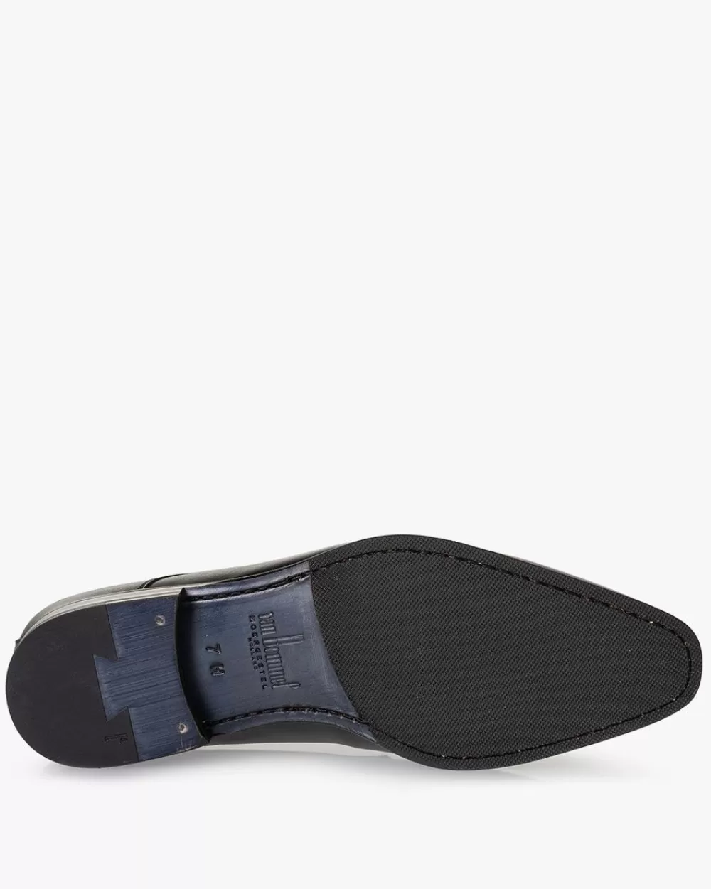 This medium high Van Bommel lace shoe stands out by its luxurious appeal. The black calf leather is polished to colour by hand, giving it a shiny feel. The slightly tapered toe cap makes this shoe look slim, and the leather sole with rubber outsole gives it perfect traction.This article has been given a new article number. The old article number is 20425/01.